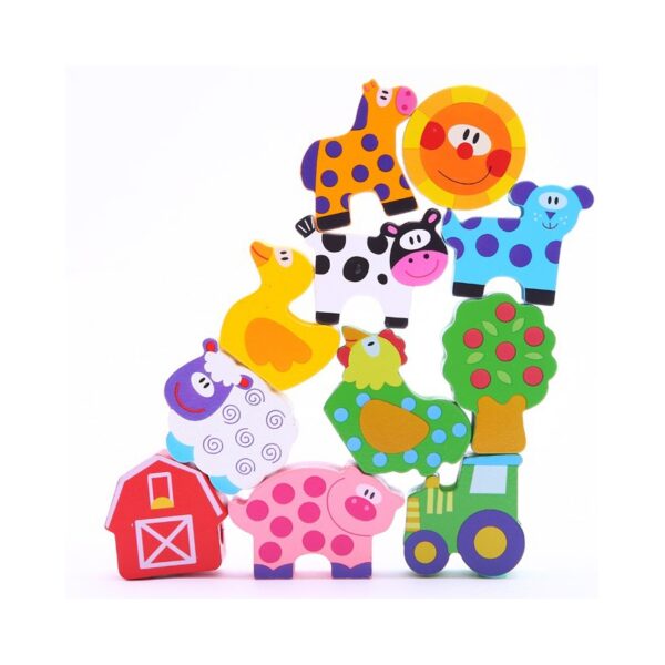 - – zestaw składa się ze sznureczka oraz 12 klocków przedstawiających różne elementy farmy, m.in.: krówkę, traktor, czy stodołę