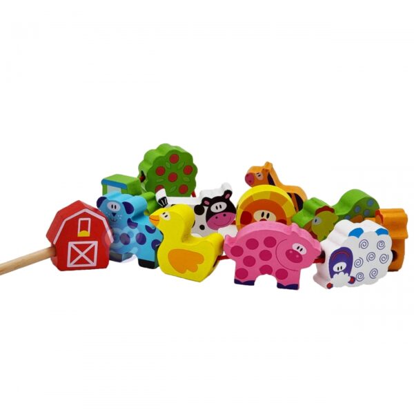 Klocki Koraliki Do Nawlekania Zwierzęta Farma od marki WOOPIE z serii GREEN to idealna zabawka do rozwijania umiejętności manualnych dziecka. Przeplatanka dla dzieci utrzymana została w motywie farmy. Nawlekanka to klasyczny zestaw drewnianych klocków z dziurkami, przez które dziecko przeplata sznureczek. Jest to świetna zabawa, która pobudza obszary w mózgu i rozwija zdolności manualne tzw. „małą motorykę”, koordynację ręka-oko, wspomaga koncentrację oraz wzbudza ciekawość dziecka na temat wiejskiego życia na farmie!