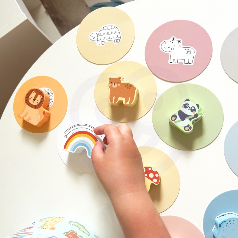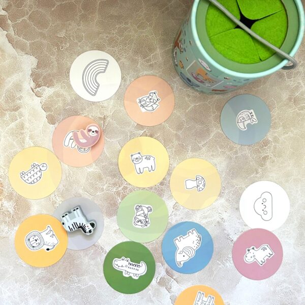 Tajemnicze Pudełko od Woopie to świetna wielofunkcyjna gra , która zapewni zabawę samodzielną oraz towarzyską. Gra zawiera 15 drewnianych figurek w tym zwierzątka, grzybka, tęczę oraz uroczą chmurkę, wszystkie ukryte w tajemniczym pudełku. Dzieci wybierają jedną z 15 kart, sięgając do pudełka, za pomocą dotyku mają odnaleźć wskazaną na obrazku figurę poznając jej kształt. Tajemnicze pudełko to oryginalna gra która cieszy się dużą popularnością. Rozwija u dzieci zmysł dotyku. ćwiczy motorykę małą oraz uwagę. Zestaw pozwala na wiele wariantów kreatywnych zabaw, np. dopasowanie w pary, naukę kolorów, nazw zwierząt oraz układanie w stos.