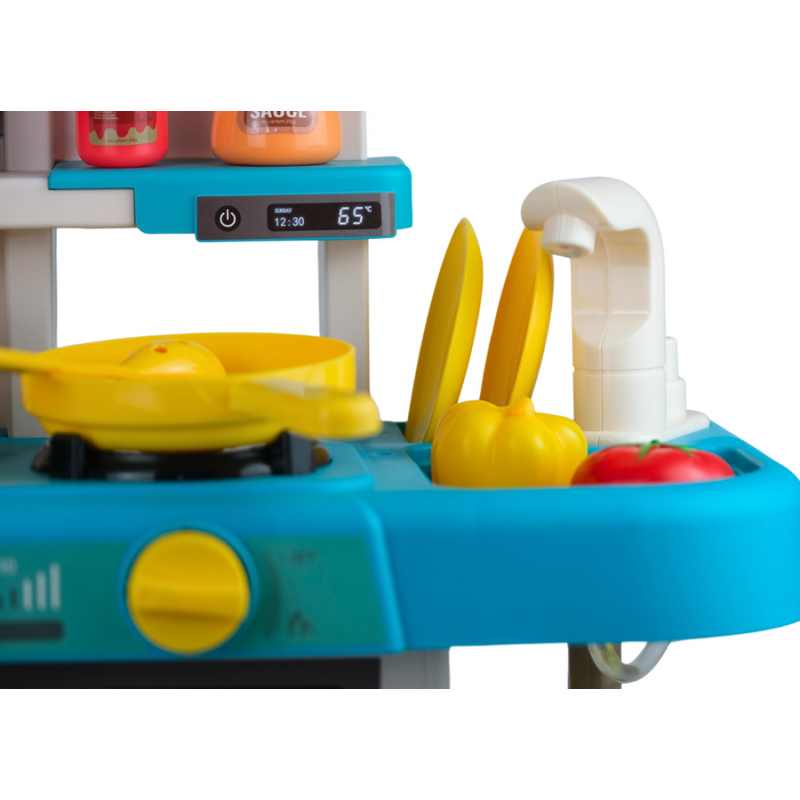 Rewelacyjna Kuchenka dla dzieci od marki WOOPIE to świetna i kreatywna zabawa dla twojego dziecka. Dzięki super odwzorowanym detalom, twoje dziecko poczuje się jakby naprawdę gotowało! Nasza kuchnia została wyposażona w funkcjonalny kran, z którego może lecieć prawdziwa woda. Dzięki obiegowi zamkniętemu, woda wróci do zlewu, umożliwiając dziecku zabawę w mycie warzyw, owoców, naczyń, czy nawet małych rączek. Z dwoma pokrętłami sterującymi palnikami, nasza kuchnia ożywa świetlnie i dźwiękowo. Pierwsze pokrętło włącza pierwszy palnik, rozbłyskując światłem, a drugie pokrętło aktywuje drugi palnik, towarzysząc temu migoczącym światłom i dźwiękom smażenia. Dodatkowo z pokrywki garnka wydobywa się para wodna, jak podczas prawdziwego gotowania! To nie tylko zabawka – to interaktywne narzędzie edukacyjne, które pozytywnie wpływa na rozwój wyobraźni i pobudza kreatywność dziecka.
