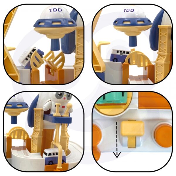 – Zaprojektowany na wzór bazy kosmicznej, z elementami takimi jak statki kosmiczne i pojazd UFO