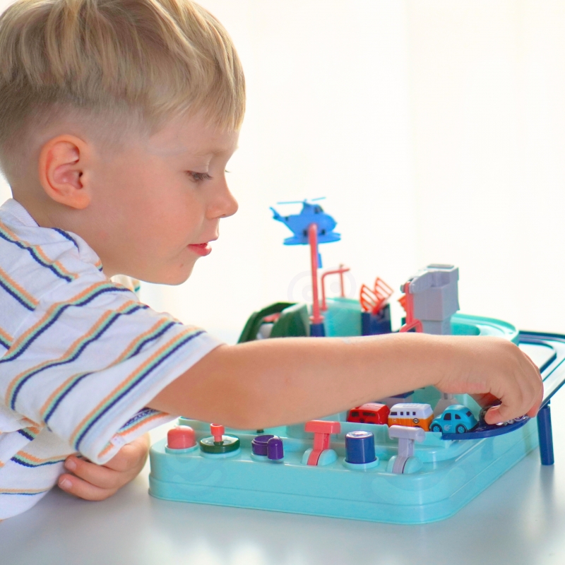 Interaktywny tor przeszkód „Samochodowa Przygoda” to niezwykły prezent dla małych odkrywców, którzy pragną ekscytujących przygód i niezapomnianych wyzwań. To więcej niż tylko zabawka – to prawdziwa arena, gdzie dzieci mogą wcielić się w role kierowców i pokonywać różne przeszkody. Dzięki przemyślanej konstrukcji i różnorodnym elementom, zabawka oferuje niezapomniane chwile pełne ekscytacji i wyzwań. To idealne narzędzie do rozwijania wyobraźni i umiejętności manualnych, które jednocześnie dostarcza mnóstwo frajdy. Tor samochodowy zapewnia nie tylko możliwość przejażdżek, ale także dynamiczne, interaktywne elementy, którymi operuje się przyciskami i gałkami. To ekscytująca gra, która wymaga skupienia i zręczności. W zestawie znajdują się trzy samochodziki, które dowolnie mogą eksplorować tor, zależnie od wyobraźni malucha. Pojazdy urozmaicą zabawę lub umożliwią dzieciom rywalizację na trasie. Przejazd przez tor wydaje się łatwy, ale liczne elementy, takie jak przekładnie lub zwodzone mosty sprawią, że podróż stanie się pełna adrenaliny.