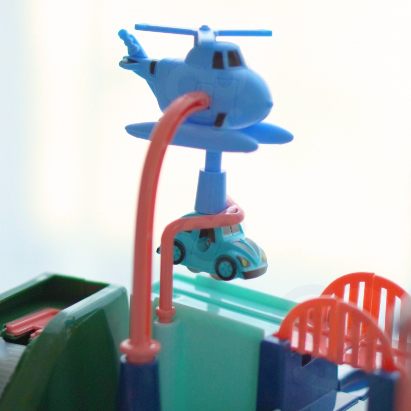 - Most zwodzony – Po przeniesieniu przez rakietę, autko przejeżdża przez most, który można podnosić i opuszczać
