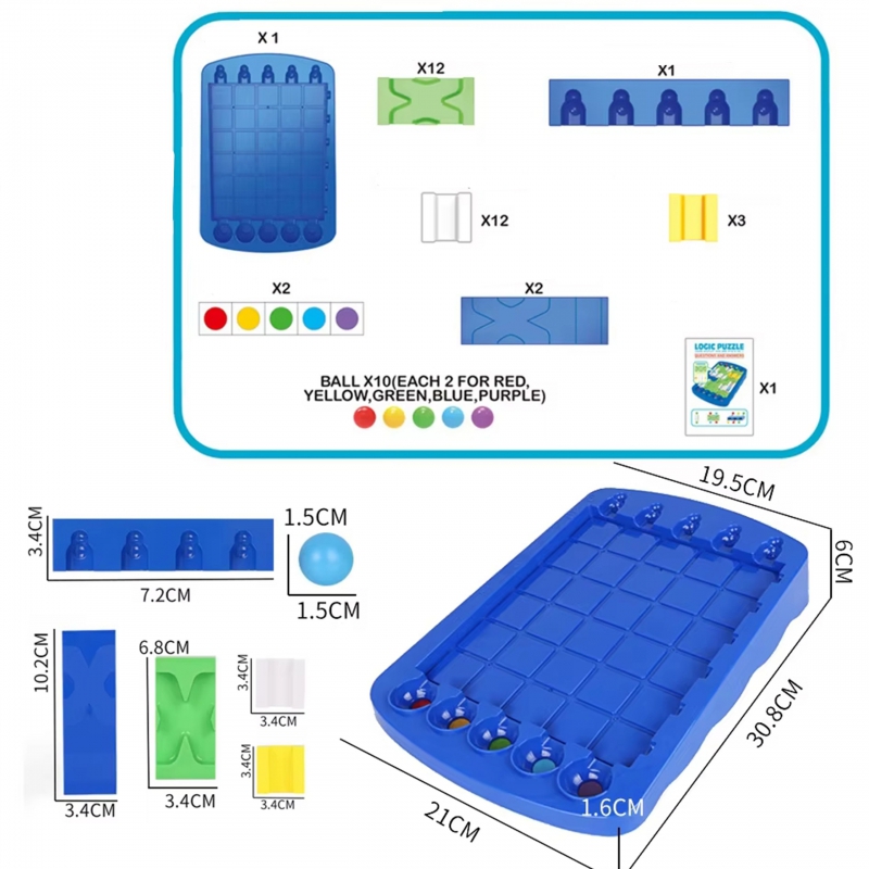 Gra Strategiczna od marki WOOPIE, to wspaniały pomysł na prezent dla twojego dziecka jeśli chcesz aby spędziło czas na rozwijającej, wspierającej rozwój grze. Proste zasady i rozgrywka, która angażuje mózg dziecka do myślenia, gwarantują godziny wspaniałej zabawy. Zasady są łatwe – każdy kolor kulki musi trafić do odpowiadającemu jej dołeczka. Nie jest to jednak takie łatwe, do gry dołączona jest książeczka z 60 zadaniami do wykonania podczas budowy różnych torów dla kuleczek.