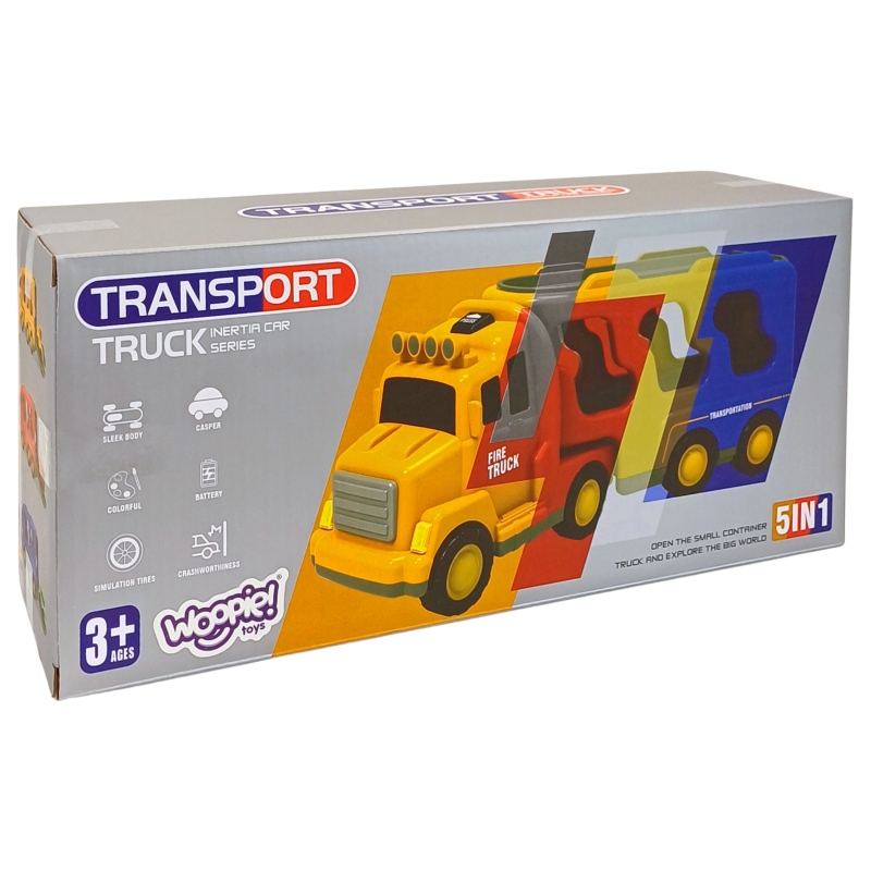 Duży Zestaw Straży Pożarnej Laweta + 4 Auta od Marki Woopie Zaprojektowana z myślą o małych pasjonatach straży pożarnej, ta zabawka 5 w 1 to idealny zestaw dla każdego małego ratownika! Naciśnij przycisk na górze kabiny ciężarówki, aby zobaczyć jasne migające światła i usłyszeć realistyczne syreny, bardzo atrakcyjne dla dzieci. Zestaw zawiera dużą ciężarówkę transportową oraz cztery pojazdy strażackie: samochód strażacki, ciężarówkę z drabiną, helikopter, zraszacz oraz SUV. Każdy z pojazdów ma ruchome elementy, które pozwolą Twojemu dziecku poczuć się jak prawdziwy bohater podczas akcji ratunkowych! Zestaw jest świetnym pomysłem na prezent urodzinowy, świąteczny czy na inne okazje.
