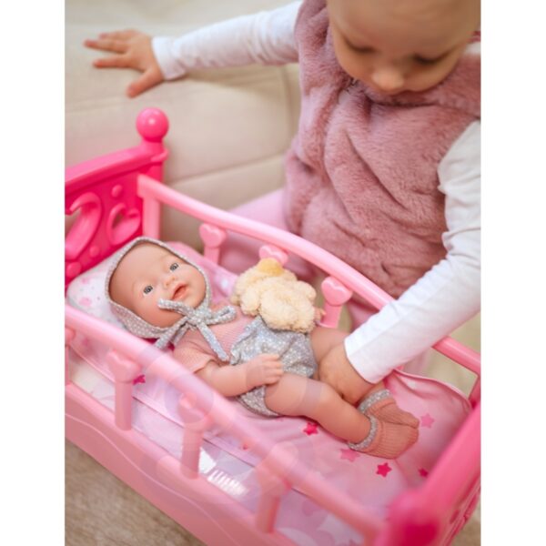Bobas Moja ukochana Lalka od marki WOOPIE ROYAL, to świetnej jakości, starannie wykonany produkt, który na pewno pokocha twoje dziecko. Laleczka ubrana jest w śliczny komplet ubrań, pasujące do niego skarpetki oraz czapeczkę. Dodatkowo do zestawu dołączony jest uroczy miś, którego laleczka może trzymać na zmianę z butelką. Bobas ma ruchome kończyny a do ust można jej włożyć dołączony do zestawu smoczek.