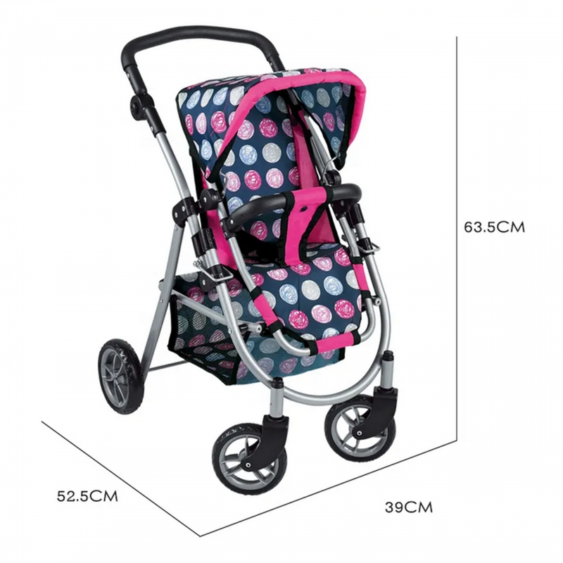 Stylowy i funkcjonalny wózek dla lalek od marki WOOPIE to wymarzony prezent każdej małej miłośniczki zabawy lalkami. Dzięki regulowanemu siedzisku można go łatwo dostosować do różnych potrzeb zabawy, umożliwiając przewożenie ulubionych lalek. Obracające się przednie koła gwarantują płynność prowadzenia, a solidna konstrukcja zapewnia stabilność podczas spacerów. Wózek wyposażono w miękką, wygodną rączkę i pojemny koszyk na akcesoria, który pomieści wszystkie drobiazgi niezbędne podczas zabawy. Składany daszek chroni lalki przed „słońcem”, a kompaktowa konstrukcja sprawia, że wózek łatwo przechowywać, gdy zabawa dobiegnie końca.