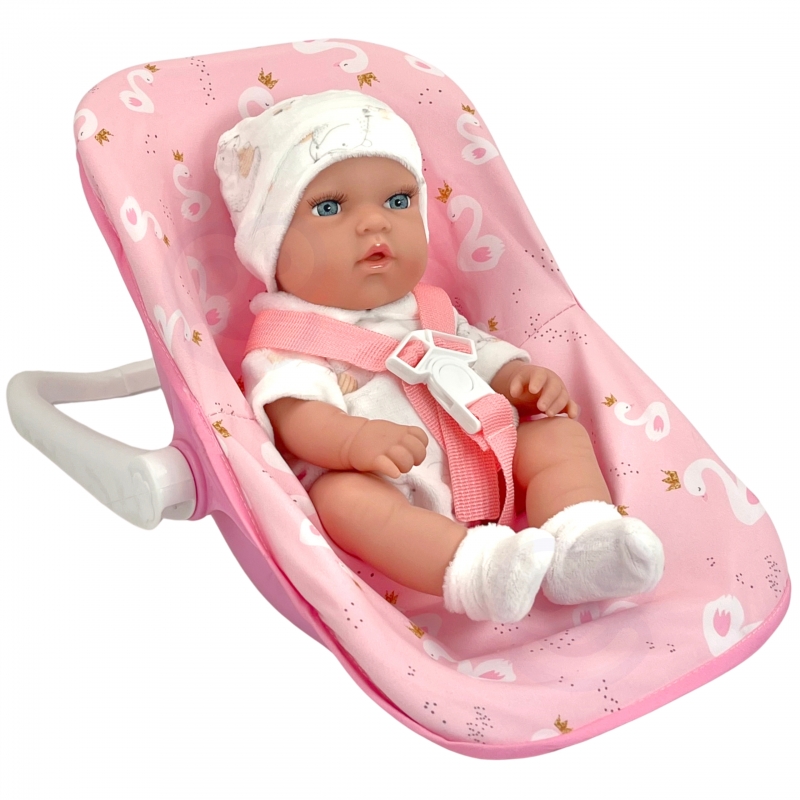 Bobas w podróży Lalka od marki WOOPIE ROYAL– Twoja Nowa Przyjaciółka do Zabawy! Laleczka ubrana jest w śliczny komplet ubrań, pasujące do niego skarpetki oraz czapeczkę. Dodatkowo do zestawu dołączone jest urocze nosidełko w pięknym różowym kolorze. Dziecko rozwija kreatywność dzięki zabawą w odgrywanie ról. Uczy się empatii, wrażliwości czy nawet odpowiedzialności.