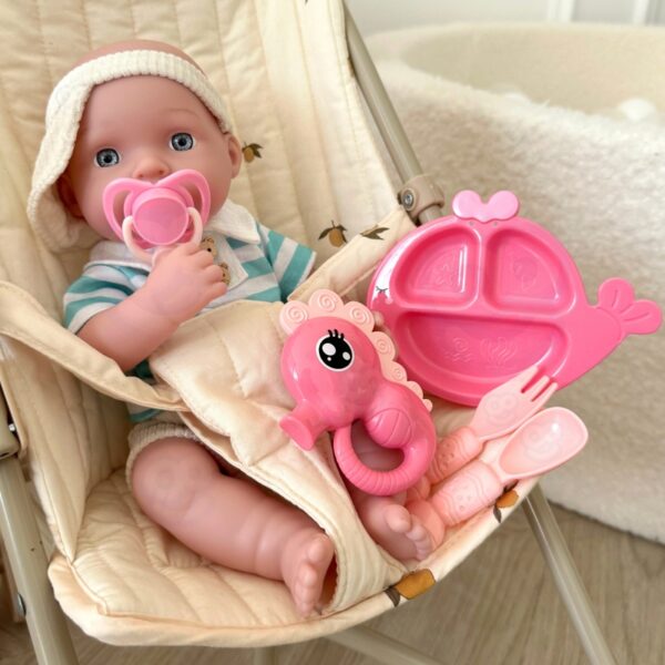 Zestaw Opiekunka to niezwykła zabawka, stworzona z myślą o dzieciach, które pragną wcielać się w role dorosłych. Lalka o długości 30 cm została starannie wykonana z miękkiej gumy, co zapewnia miękkość i przyjemność w dotyku. Jej rączki, nóżki i głowa są obracane, co pozwala na różnorodne pozycje podczas zabawy, a także posiada zdejmowane ubranko, co umożliwia maluchom kreatywne ubieranie i rozbieranie lalki. W zestawie znajdują się wszystkie niezbędne akcesoria do opieki nad lalką. Znajdziesz tu zestaw do karmienia, przewijania oraz zabawy. Na spacery warto zabrać lalkę i plecak z nosidełkiem, co pozwoli dzieciom na jeszcze większą integrację i kreatywność podczas zabawy.