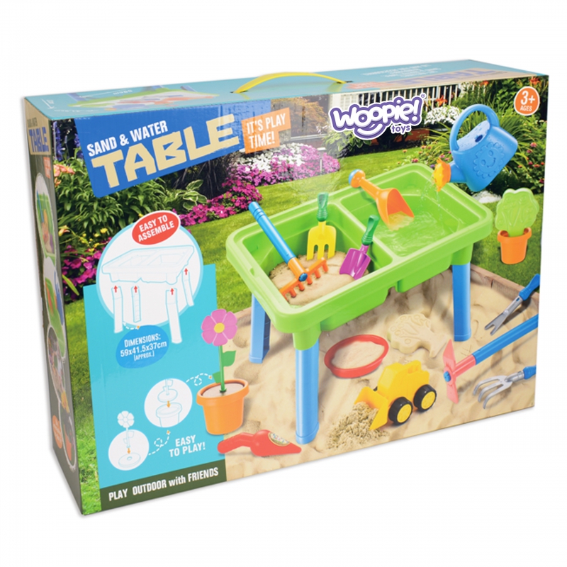 Stół Wodny 2w1 Piaskownica od marki WOOPIE to doskonała zabawka, która zapewni dzieciom niezliczone godziny zabawy z wodą i piaskiem. W skład zestawu wchodzi aż 13 różnorodnych akcesoriów, takich jak: foremka, konewka, koparka oraz dwie łopatki. Stolik posiada dwa wgłębienia – jedno można wypełnić wodą, a drugie piaskiem, co pozwala na kreatywną zabawę w dowolnym miejscu. Zestaw idealnie sprawdza się zarówno w domu, jak i na plaży czy w piaskownicy. Ten wszechstronny zestaw umożliwia dzieciom tworzenie nieograniczonych scenariuszy zabaw, pobudzając ich wyobraźnię i rozwijając umiejętności manualne. Idealny do twórczej zabawy zarówno wewnątrz, jak i na świeżym powietrzu!