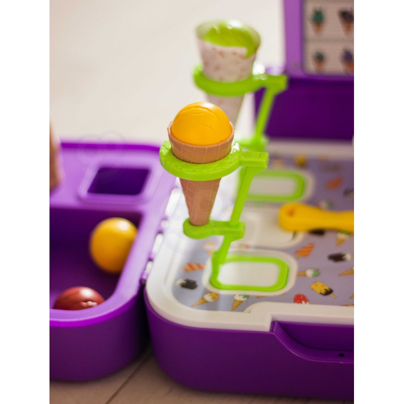 Stoisko z lodami zostało stworzone, by sprostać najbardziej wymagającym dzieciom. Sklep dla maluchów został zaprojektowany z myślą o sprzedaży lodów. Ty i Twoje dzieci pokochacie oryginalność projektu i sposób, w jaki pobudza wyobraźnię. Sklepik-lodziarnia dla dzieci nie tylko zachęca do zabawy, ale również służy jako zabawka edukacyjna dla dzieci. Zestaw świetnie się sprawdzi na przyjęcia urodzinowe, imprezy przy basenie, plac zabaw, w klasie lub przedszkolu. Ten super produkt świetnie się sprawdzi jako prezent dla Twoich pociech! Całość zapakowana w stylową walizkę.