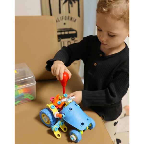 Zestaw Konstrukcyjny Pojazdy 6w1 od firmy WOOPIE to świetny pomysł na twórczą zabawę – skutecznie zajmują na wiele długich godzin i wyzwalają absolutny wulkan kreatywnych pomysłów! Rozbudź wyobraźnię i zdolności manualne swojego dziecka dzięki wyjątkowym klockom konstrukcyjnym! Zestaw zawiera 118 elementów, które pozwolą na stworzenie różnych pojazdów, w tym traktora, koparki czy gokartów . Niezależnie od płci, ta zabawka jest doskonała zarówno dla chłopców, jak i dziewczynek. Rozwijająca kreatywność i zdolności manualne, pozwala każdemu dziecku odkrywać świat budownictwa i projektowania w sposób, który dostarcza mnóstwo satysfakcji i radości.